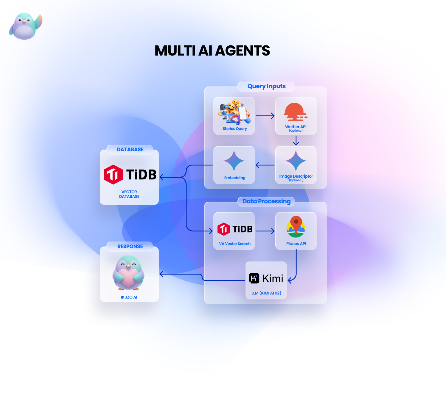 Explore the technical implementation behind Ikuzo AI's multi-step agent system and data flow architecture.